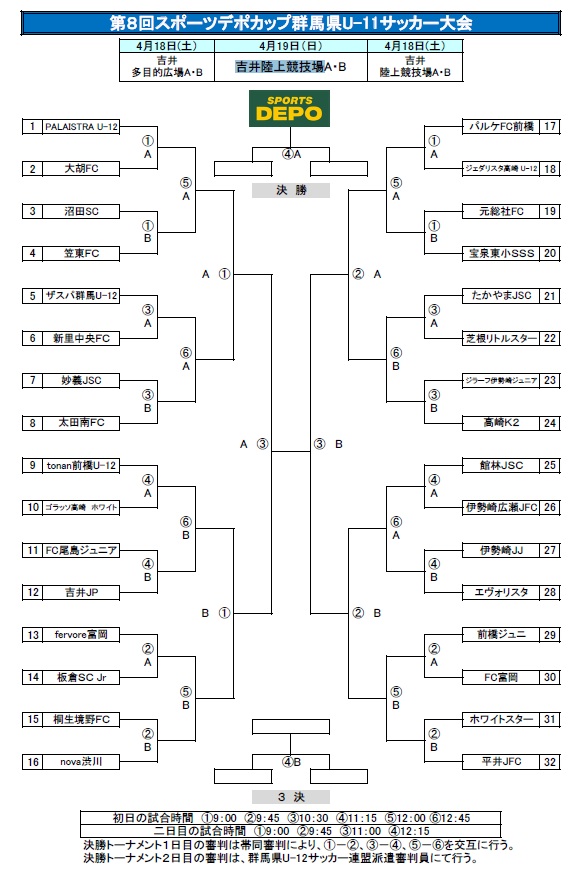 2026 第8回スポーツデポカップU-11サッカー大会 決勝トーナメント組み合わせ